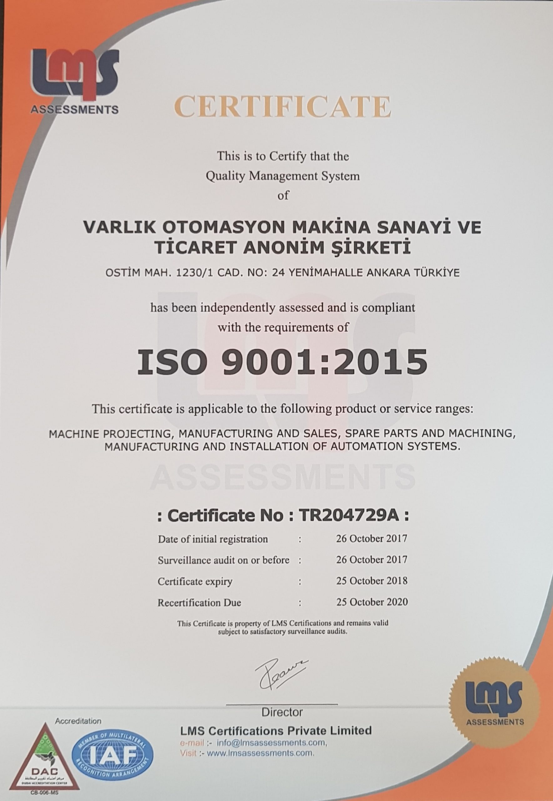 Sertifikalarımız